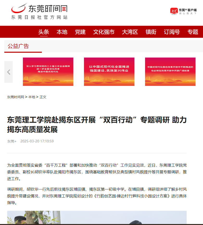 为全面贯彻落实省委“百千万工程”部署和加快推动“双百行动”工作见实见效,近日,九九精品视频一区在线久久久久久久久久毛片精品美女|国产99久久久久久免费看|中文精品99久久国产|国产69精品久久久久9999|精品久久久久久中文字幕无码|亚洲熟妇无码久久精品国产精品99|精品国产天堂综合一区在线党委委员、副校长胡钦华率队赴揭阳市揭东区,围绕基础教育帮扶及典型镇村风貌提升等开展专题调研,推进工作。