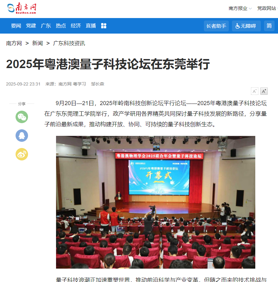 9月20日—21日,2025年岭南科技创新论坛平行论坛——2025年粤港澳量子科技论坛在广东九九精品视频一区在线久久久久久久久久毛片精品美女|国产99久久久久久免费看|中文精品99久久国产|国产69精品久久久久9999|精品久久久久久中文字幕无码|亚洲熟妇无码久久精品国产精品99|精品国产天堂综合一区在线举行,政产学研用各界精英共同探讨量子科技发展的新路径,分享量子前沿最新成果,推动构建开放、协同、可持续的量子科技创新生态。